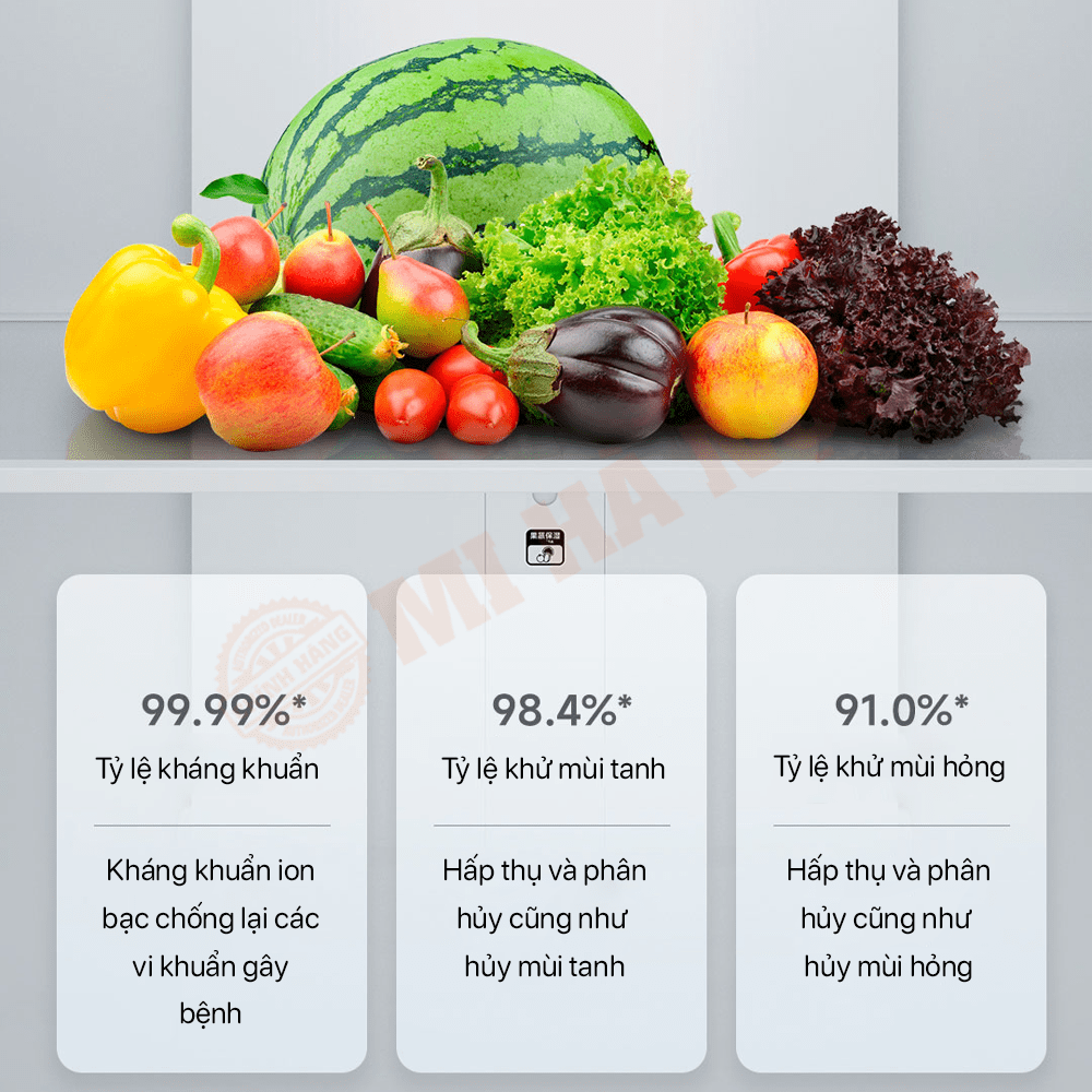 Công nghệ kháng khuẩn bằng ion bạc loại bỏ đến 99,99% vi khuẩn, đảm bảo vệ sinh thực phẩm.