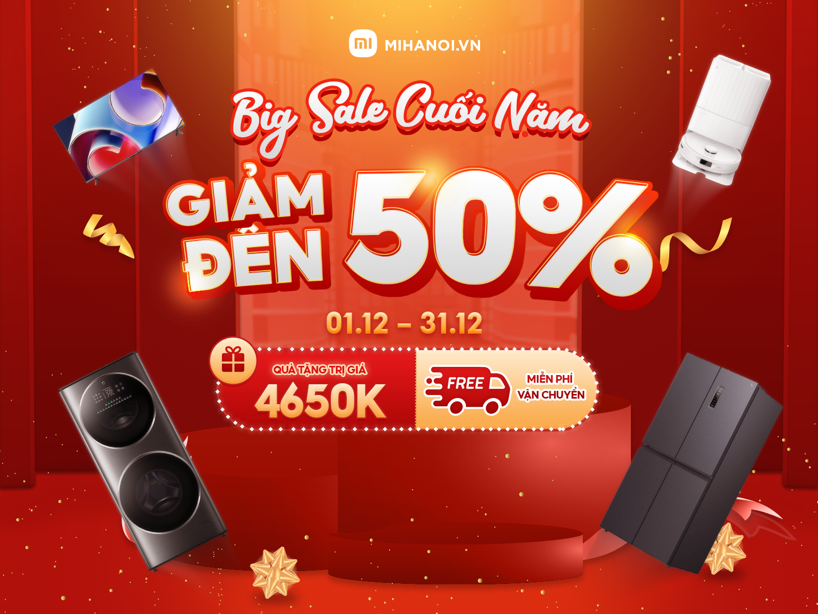 Tận hưởng không khí cuối năm cùng đợt Big Sale Xả Kho – Giảm giá tới 50% chỉ có tại Mi Hà Nội! Hơn 300 sản phẩm chính hãng Xiaomi như: máy giặt, máy rửa bát, tủ lạnh, máy hút bụi, robot hút bụi, máy sưởi, TV… sẽ có mức giá tốt nhất năm kèm theo hàng loạt voucher hấp dẫn! Đừng bỏ lỡ bạn nhé!