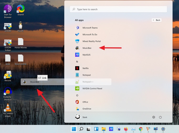 Một trong những cách nhanh nhất để đưa ứng dụng ra desktop là kéo thả trực tiếp từ menu Start. Thực hiện theo các bước sau: