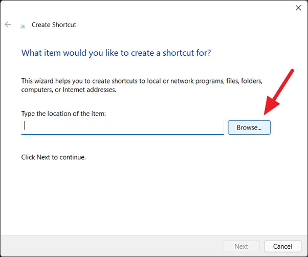 Bước 3: Ngoài ra, bạn có thể nhấn chuột phải vào desktop, chọn New > Shortcut, sau đó trong hộp thoại , nhấn Browse để tìm tệp .exe của ứng dụng.