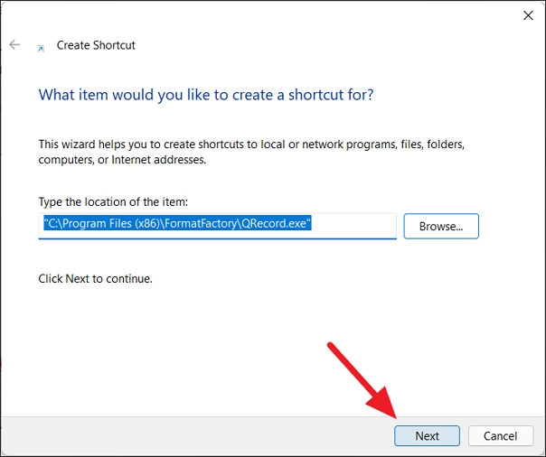 Create ShortcutBrowse for Files or FoldersNhấn Finish