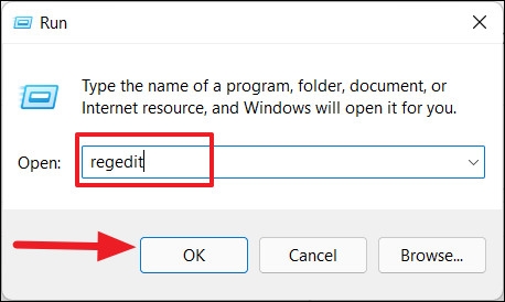 Bước 1: Mở Windows Registry Editor bằng cách nhấn Windows + R, nhập regedit, nhấn Enter. Hoặc tìm kiếm Registry Editor từ thanh tìm kiếm của Windows và chọn ứng dụng.