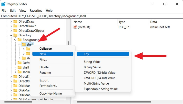 Bước 3: Tạo khóa (Key) mới bên dưới shell bằng cách nhấn chuột phải và chọn New > Key.