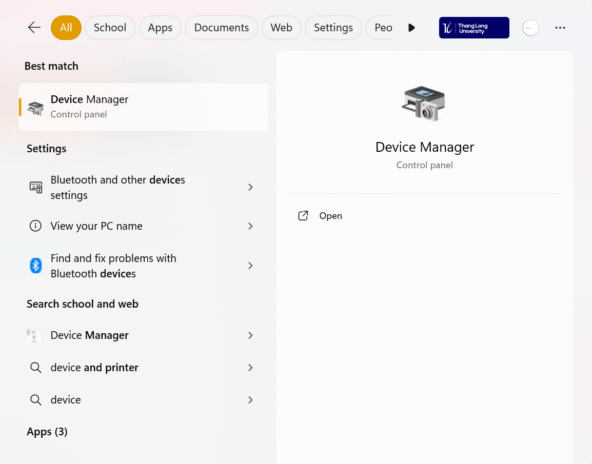 Tìm kiếm Device Manager