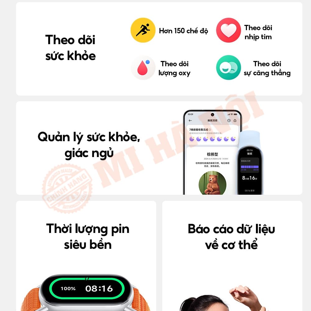 Với hơn 150 chế độ thể thao và cảm biến thông minh theo dõi sức khỏe chính xác, Xiaomi Mi Band 9 là một người bạn đồng hành lý tưởng cho những ai yêu thích luyện tập. Tính năng theo dõi nhịp tim, quản lý giấc ngủ và khả năng chống nước vượt trội giúp bạn chăm sóc sức khỏe toàn diện.