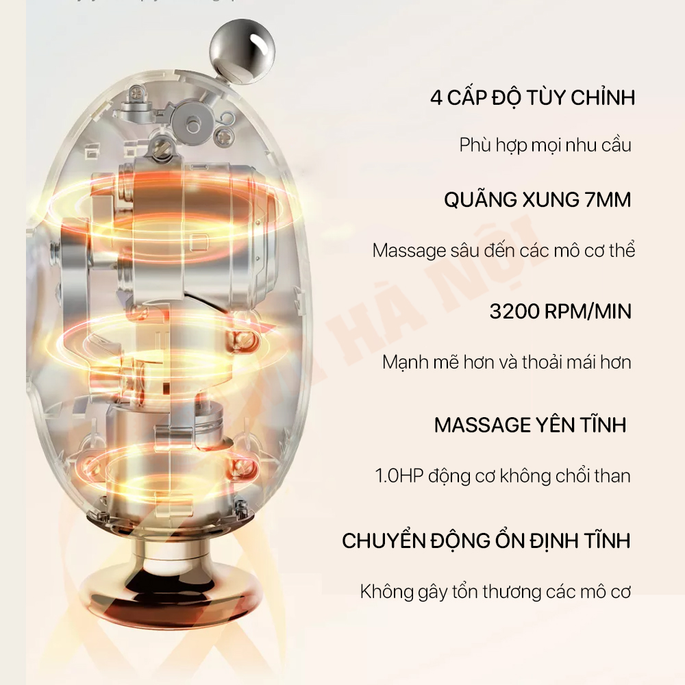 Trang bị 4 cấp độ tuỳ chỉnh và 3 đầu massage linh hoạt, tiện lợi
