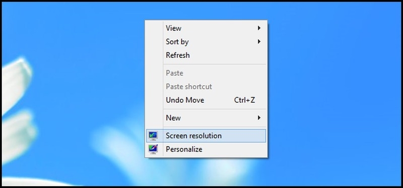 • Bước 1: Click chuột phải vào màn hình chính, chọn Screen resolution.