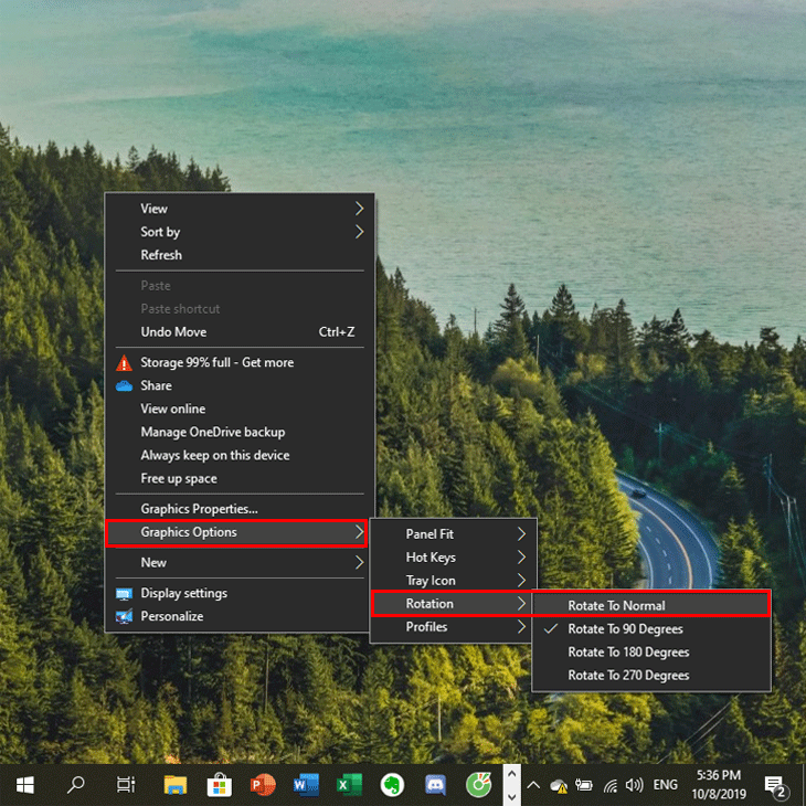 • Bước 1: Click chuột phải vào màn hình chính, chọn Graphics Options > Rotation.