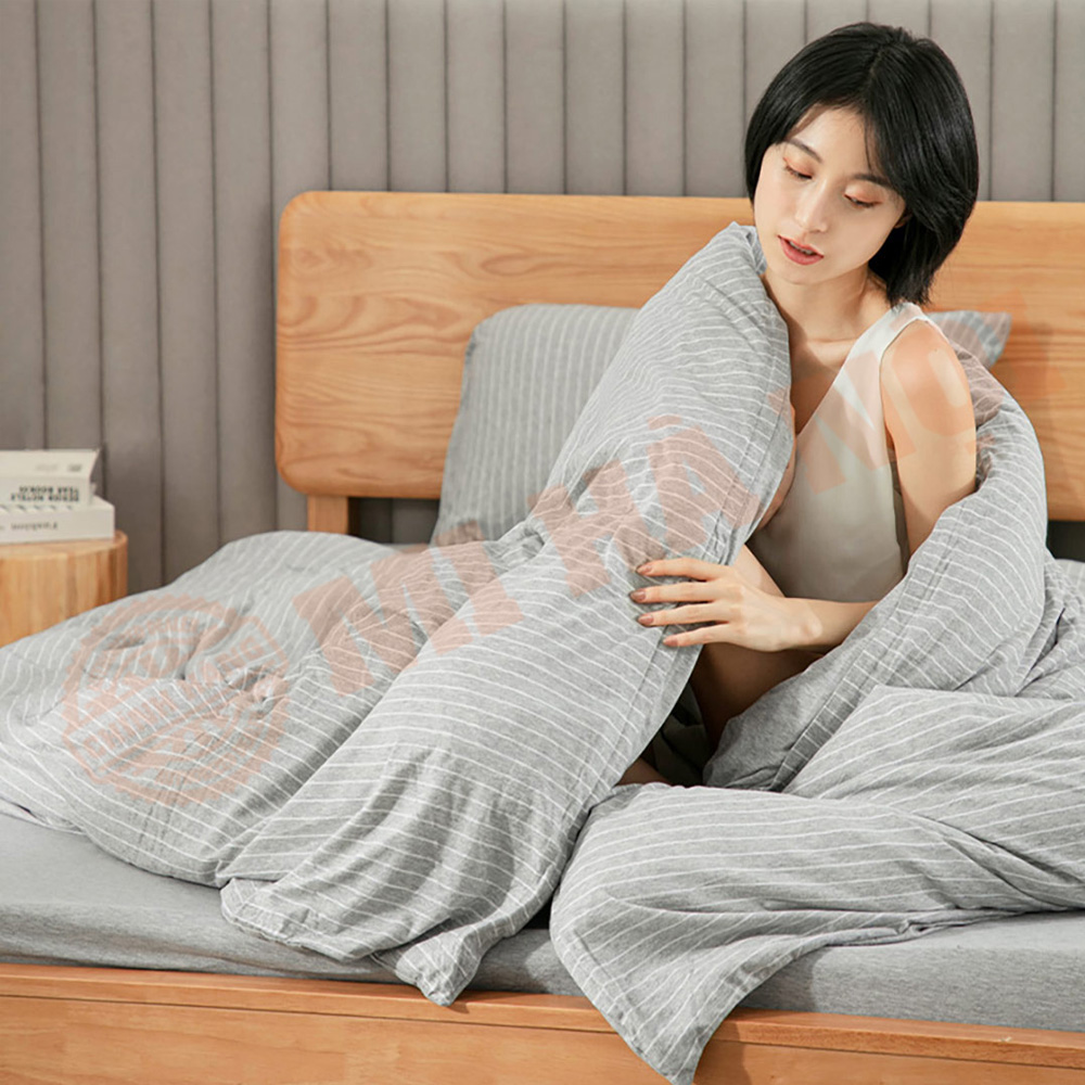8H kết hợp cotton Tianzhu với màu sắc có độ bão hòa thấp để tạo ra bầu không khí ngủ đơn giản và thoải mái. Kết cấu cotton tự nhiên thoải mái kết hợp với các màu sọc mềm mại hỗ trợ giấc ngủ. Chất liệu và thiết kế tích hợp cho phép bạn ngủ thoải và ấm áp mỗi đêm.