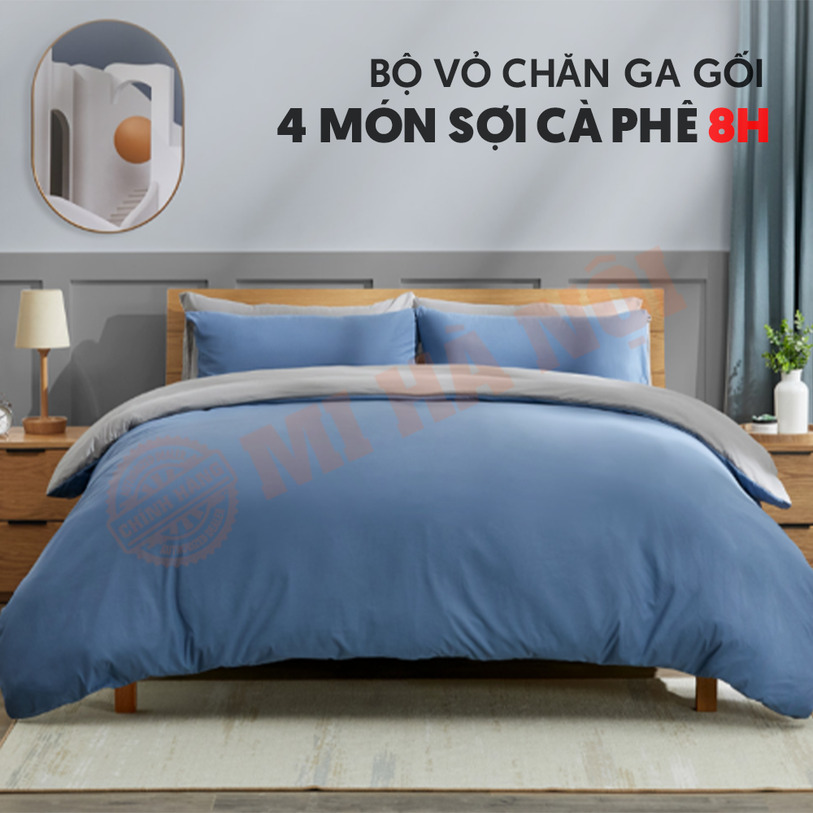 Bộ vỏ chăn ga gối 4 món sợi cà phê 8H – chất liệu nhung ấm mềm mại, kháng khuẩn, thân thiện với làn da