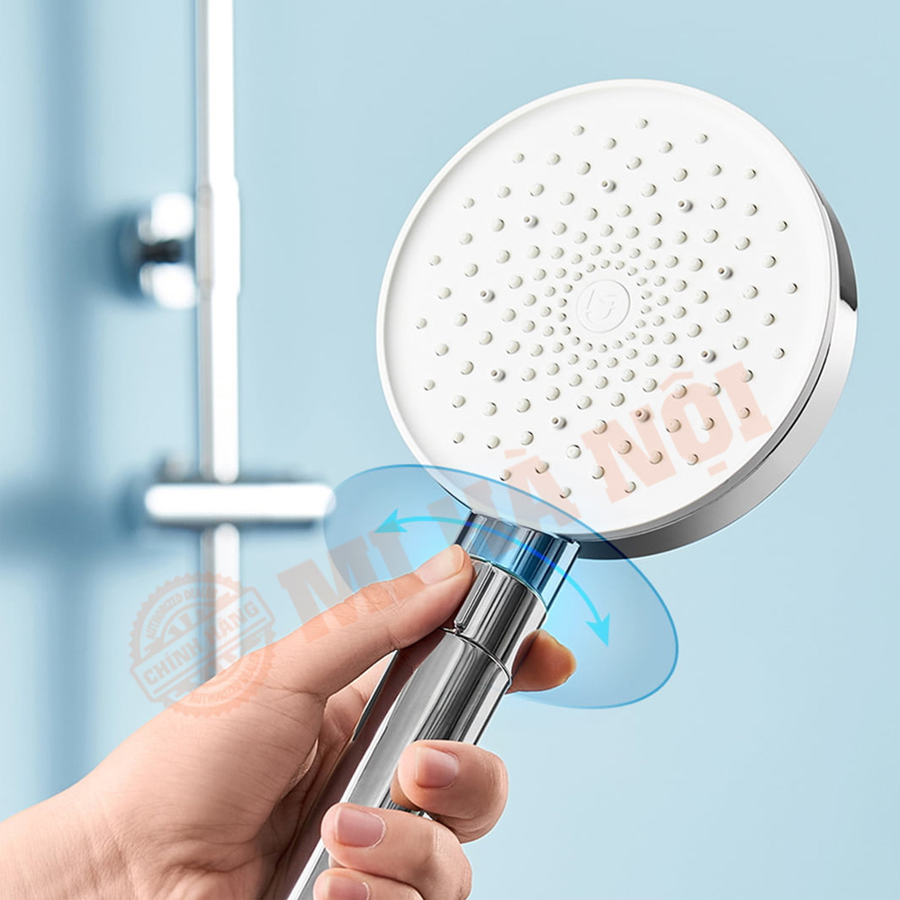 Vòi sen cầm tay tăng áp tròn, hỗ trợ ba chế độ tắm cải thiện môi trường áp suất nước thấp bao gồm: vòi sen tăng áp, vòi sen phun sương và vòi sen hỗn hợp.