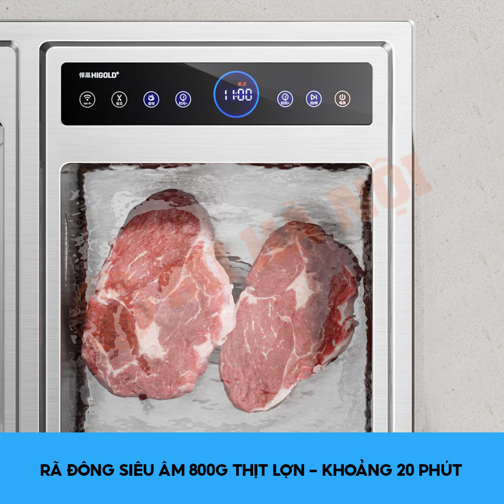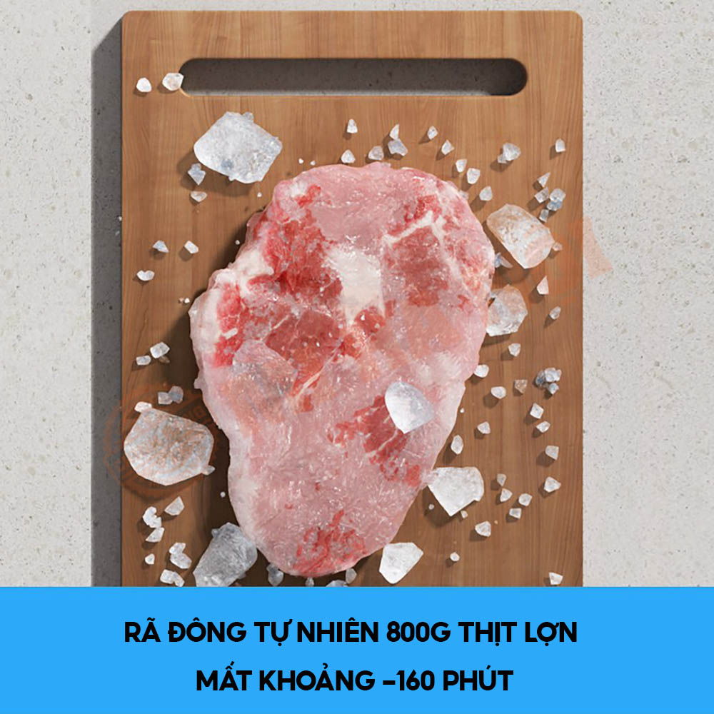 Bồn rửa chén thông minh Xiaomi Higold có tốc độ rã đông siêu âm gấp 8 lần so với rã đông tự nhiên (20 phút so với 160 phút cho 800g thịt lợn). Hiệu quả rã đông ổn định, ít phụ thuộc vào các yếu tố môi trường.