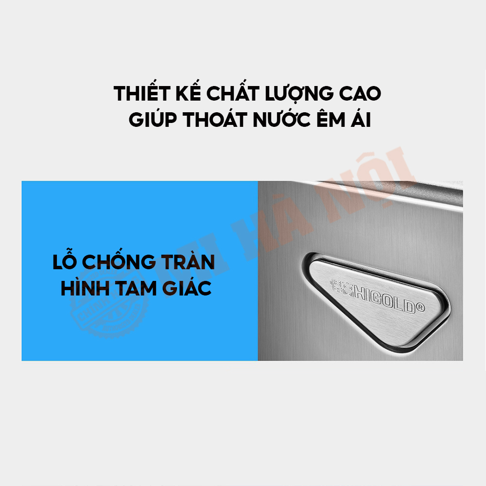 Hiệu quả: Thoát nước nhanh chóng và êm ái nhờ thiết kế lỗ chống tràn hình tam giác chất lượng cao.