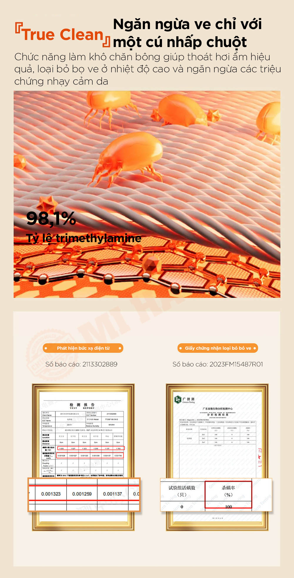 • Loại bỏ bọ ve và vi khuẩn ở nhiệt độ cao