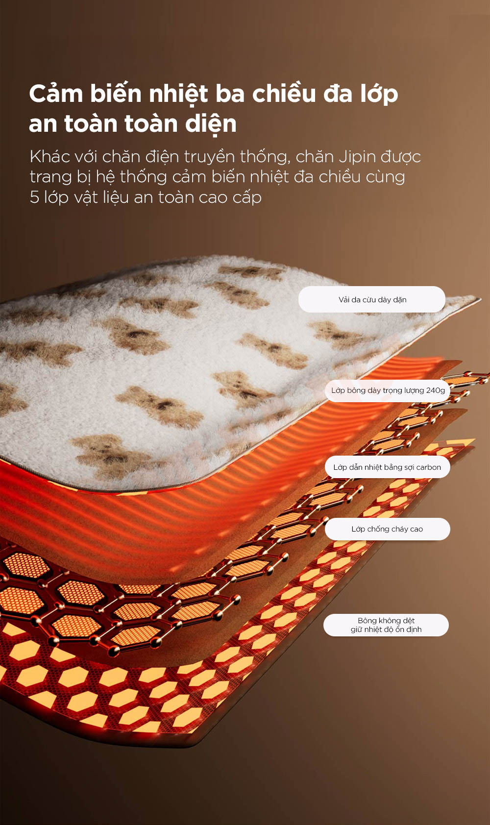 Chăn điện hai mặt Jipin Graphene giải pháp giữ ấm thông minh cho mùa đông, kết hợp công nghệ graphene hiện đại với thiết kế hai mặt tiện dụng. Chăn làm ấm nhanh chỉ trong vài giây, tỏa nhiệt đều và mềm mại như ôm trọn cơ thể, giúp bạn ngủ sâu hơn mà không gây khô da hay khó chịu. Với khả năng điều chỉnh nhiệt độ linh hoạt, an toàn tuyệt đối và tiết kiệm điện, Jipin Graphene trở thành lựa chọn lý tưởng cho gia đình muốn tận hưởng sự ấm áp nhẹ nhàng nhưng đầy sang trọng trong từng giấc ngủ.