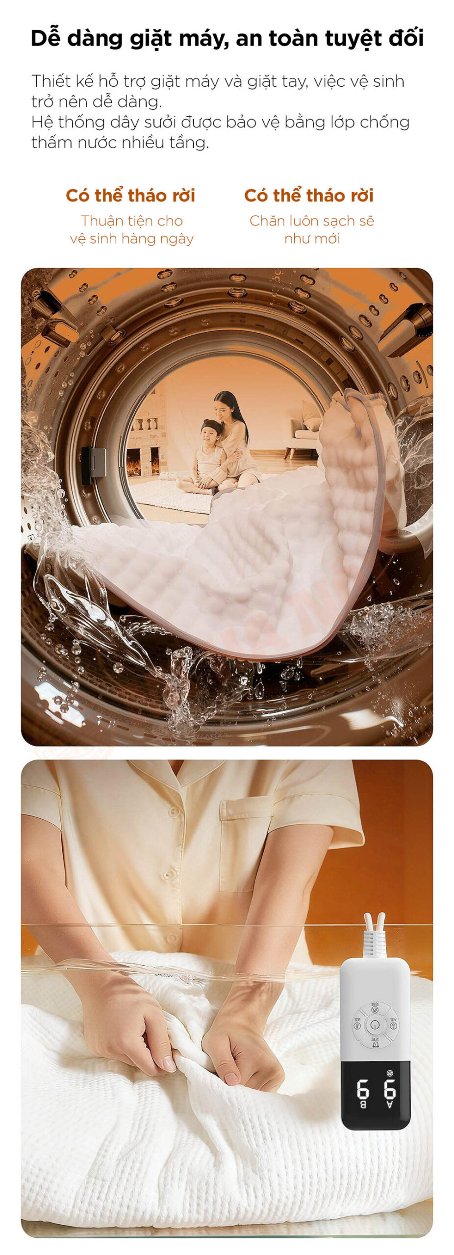 - Dễ dàng vệ sinh, thiết kế tháo rời thông minh cho phép giặt sạch nhanh chóng
