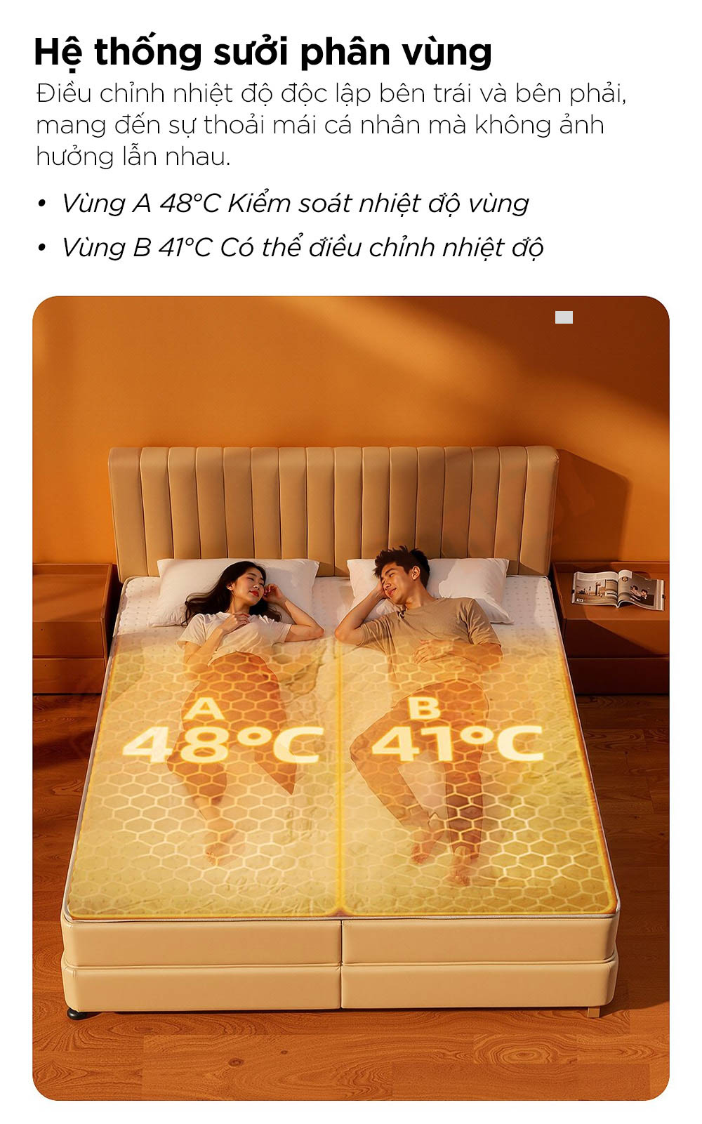 - Hệ thống sưởi phân vùng điều khiển nhiệt độ độc lập