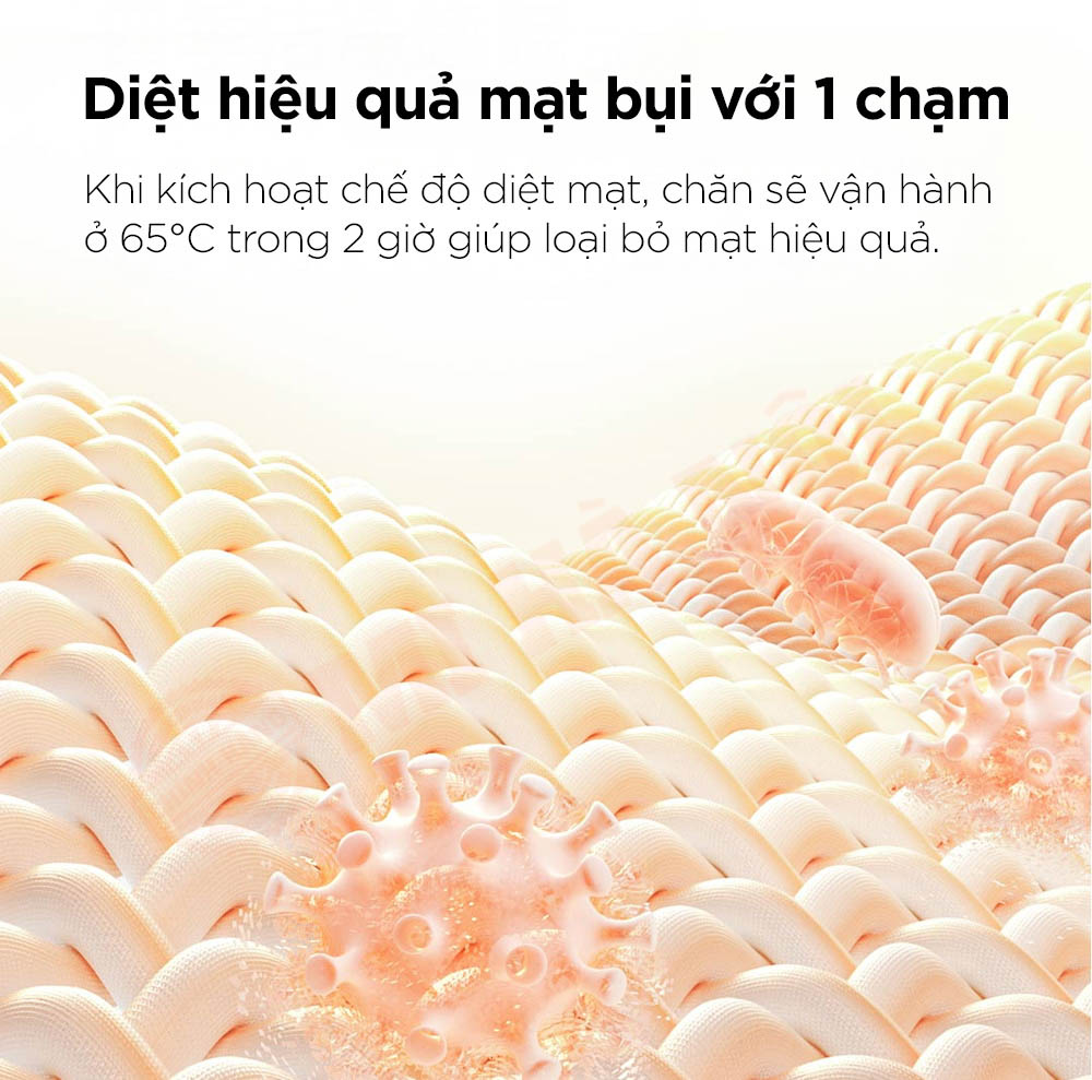 - Chế độ diệt mạt 65°C trong 2 giờ, giữ chăn sạch và an toàn bốn mùa.