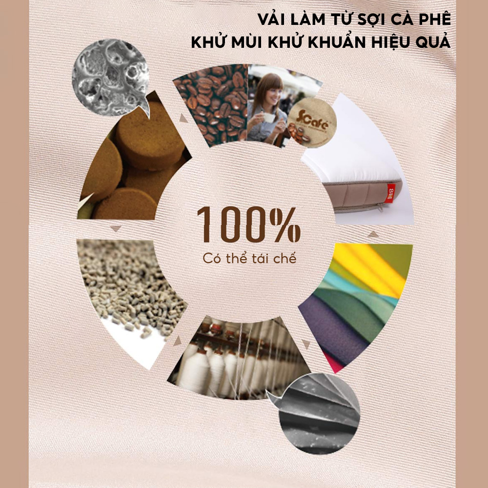 Bã cà phê nano S.Café ® có khả năng hấp thụ mùi hôi và giải phóng các nhân tố gây mùi qua ánh nắng mặt trời hoặc khi giặt bằng nước. Đệm cao su thiên nhiên Schcott 8H M1 có khả năng thấm mồ hôi nhanh chóng, tạo cảm giác thoáng mát cho người sử dụng. Các mùi hôi cũng sẽ được hấp thụ, khử mùi bởi bã cà phê.