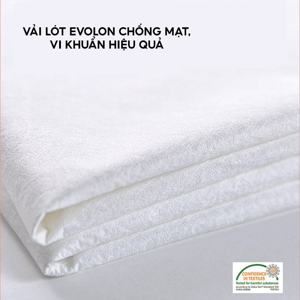 Vải lót trong EvolonⓇ của Đức có khả năng chống mạt cấp y tế, đã được công nhận trên toàn cầu. Vải có thể ngăn chặn hiệu quả ve, vi khuẩn và các chất có hại khác, hoàn toàn không xử lý qua hóa chất, an toàn với môi trường và người dùng.