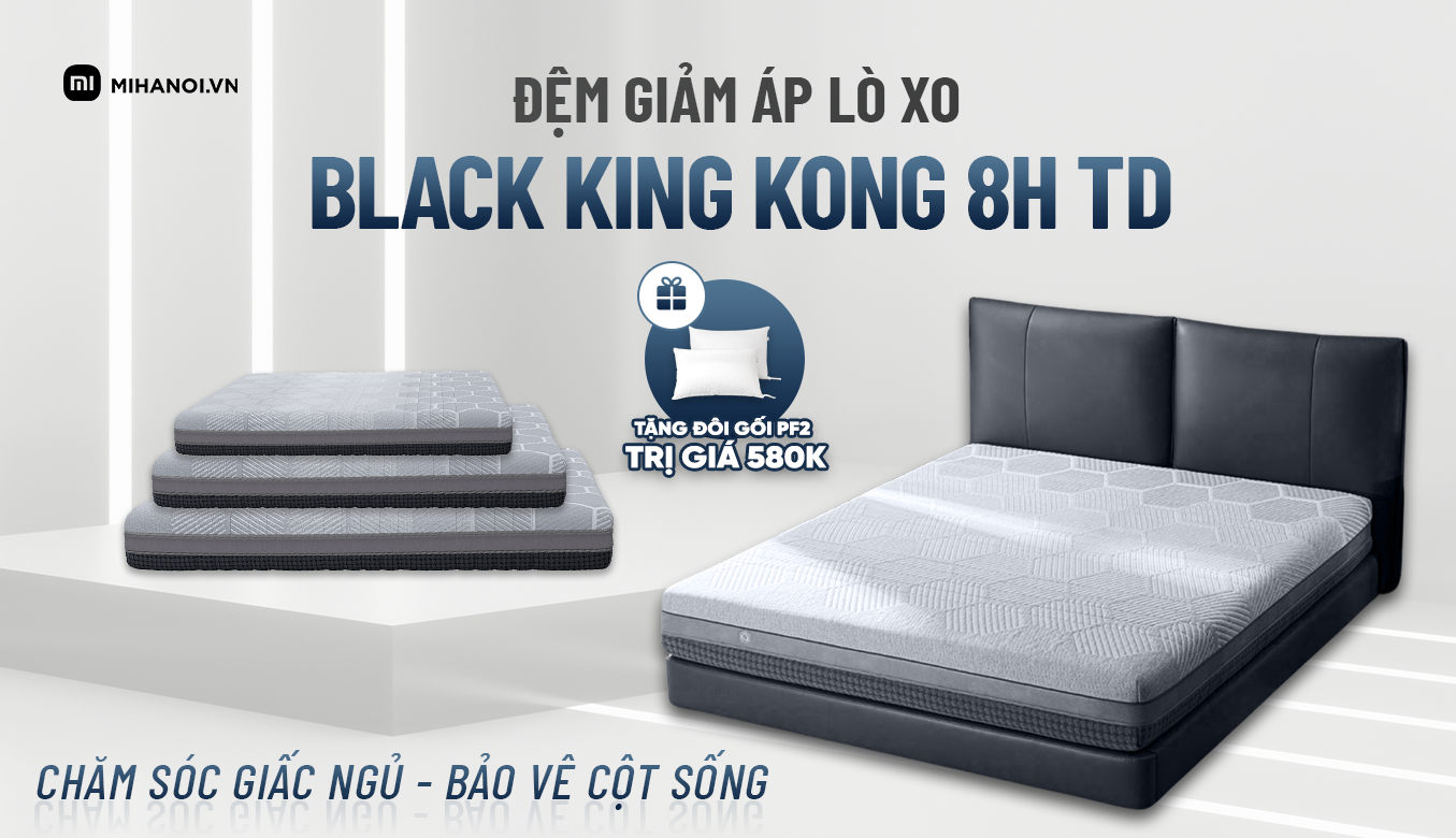 Đệm giảm áp kháng khuẩn lò xo Black King Kong 8H TD