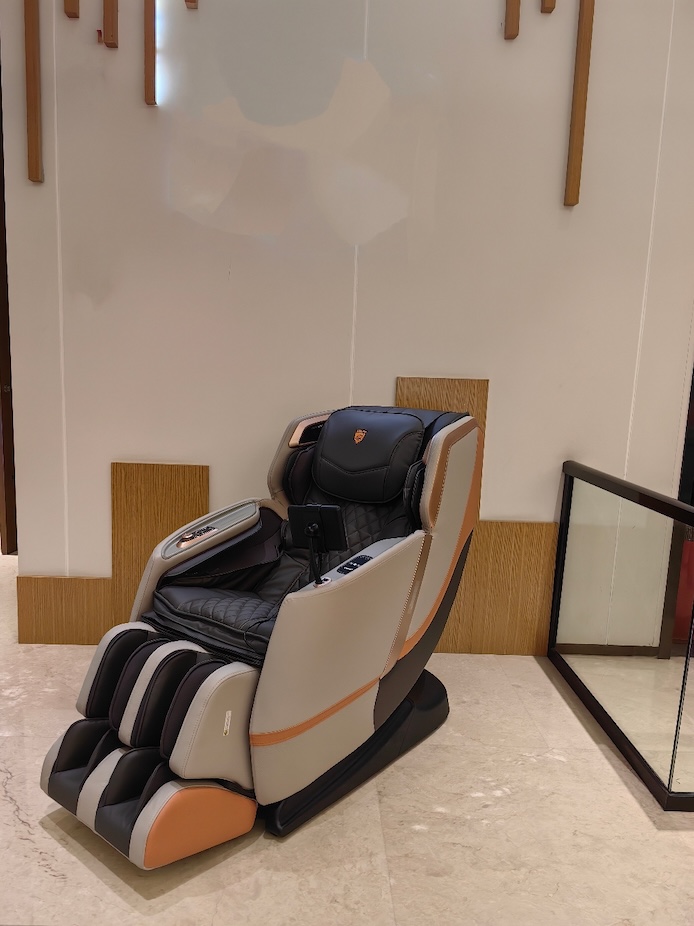 Ngoài ra, ghế còn hỗ trợ điều chỉnh tư thế ngồi, ánh sáng, tốc độ nhào 4D, kết hợp cảm giác ấm lưng, con lăn chân và nhiệt đầu gối để tạo trải nghiệm massage chân thực. Chỉ số căng thẳng thể chất (PSI) được đo qua các thông số như oxy máu, PPGA, HBI, HR và HRV, giúp AI tính toán bản đồ phân bố lực và tối ưu liệu trình theo tình trạng đau nhức cơ thể.
