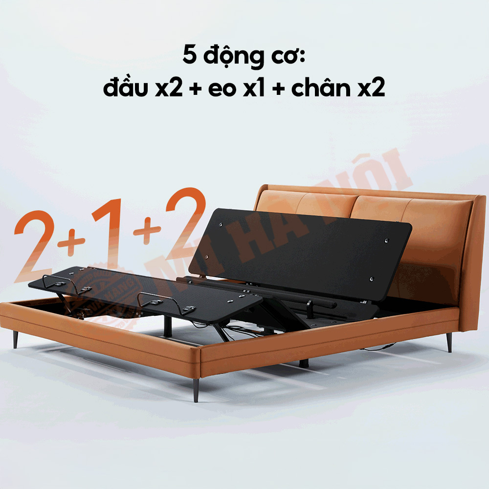 Giường thông minh có thể nâng hạ cùng lúc 3 vùng, trợ lực mạnh, nâng chậm, hạ chậm.. cùng một số chức năng thông minh tùy theo nhu cầu sử dụng của bạn, có tác dụng nâng cao. Động cơ bền bỉ đạt chứng nhận FFC với lực đẩy lên tới 600kg, ẩn dưới ván giường giúp nâng hạ êm ái và an toàn.