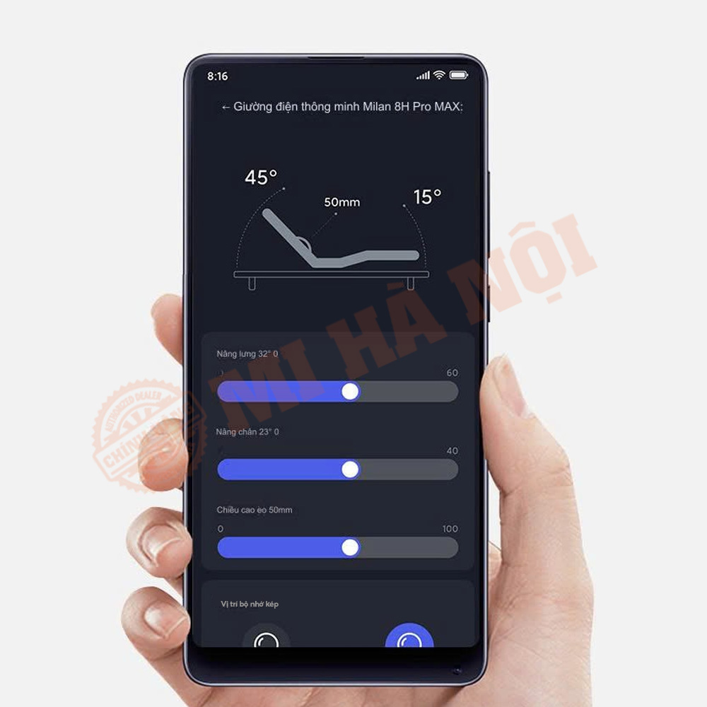 Giường điện thông minh 8H Milan Pro Max 8H – DT Max là phiên bản nâng cấp của Giường điện thông minh 8H Milan Pro với 8 chế độ khác nhau, hỗ trợ nâng eo cải tiến, 2 cách điều khiển linh hoạt dễ dàng sẽ hỗ trợ tối đa giấc ngủ chất lượng hơn, giúp bạn thư giãn, nghỉ ngơi giảm căng thẳng, mệt mỏi. Đặc biệt, kèm theo đệm massage 5D cao cấp hỗ trợ giấc ngủ kết nối và điều khiển qua App trị giá 13.9 triệu.