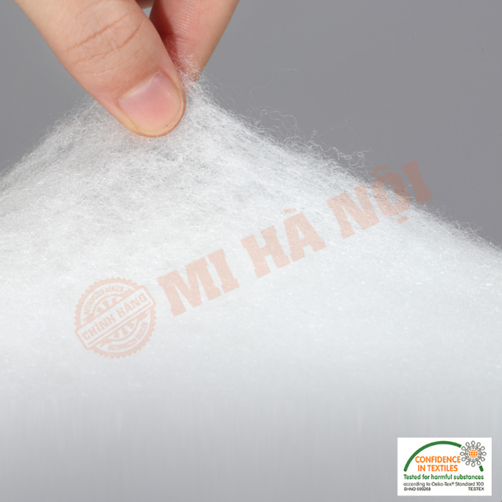 Sợi 7D được làm từ nguyên liệu đàn hồi mềm mại với độ tinh khiết cực cao, và đã được chứng nhận Okeo-Tex Standard 100 của Nhật Bản, đảm bảo không gây hại cho làn da, đặc biệt là cho trẻ sơ sinh. Điều này mang lại sự an tâm và tin cậy khi sử dụng gối, đặc biệt là trong việc chăm sóc cho người sử dụng có làn da nhạy cảm, nhất là trẻ em nhỏ.