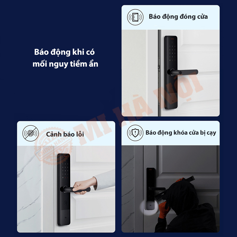 • Báo động khóa cửa bị cạy: Khi bảng điều khiển phía trước bị cạy mở, hệ thống sẽ phát ra cảnh báo bằng âm thanh và hình ảnh, giúp chủ nhà nhanh chóng nhận biết tình trạng bất thường.