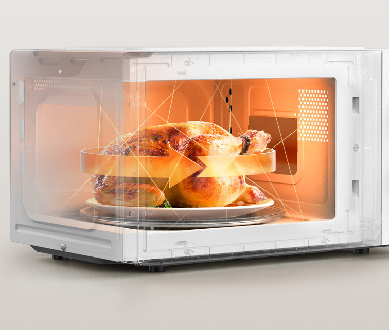 Lò vi sóng 20 lít Mijia được thiết kế với bàn xoay thủy tinh tháo rời linh hoạt, phản chiếu hình tròn 3D hiện đại. Hệ thống sưởi 360 độ đảm bảo thực phẩm được làm nóng đều, giúp món ăn luôn thơm ngon và hấp dẫn. Đặc biệt, khoang lò còn được phủ lớp nano chống bám dính, giúp việc vệ sinh trở nên nhanh chóng và dễ dàng hơn.