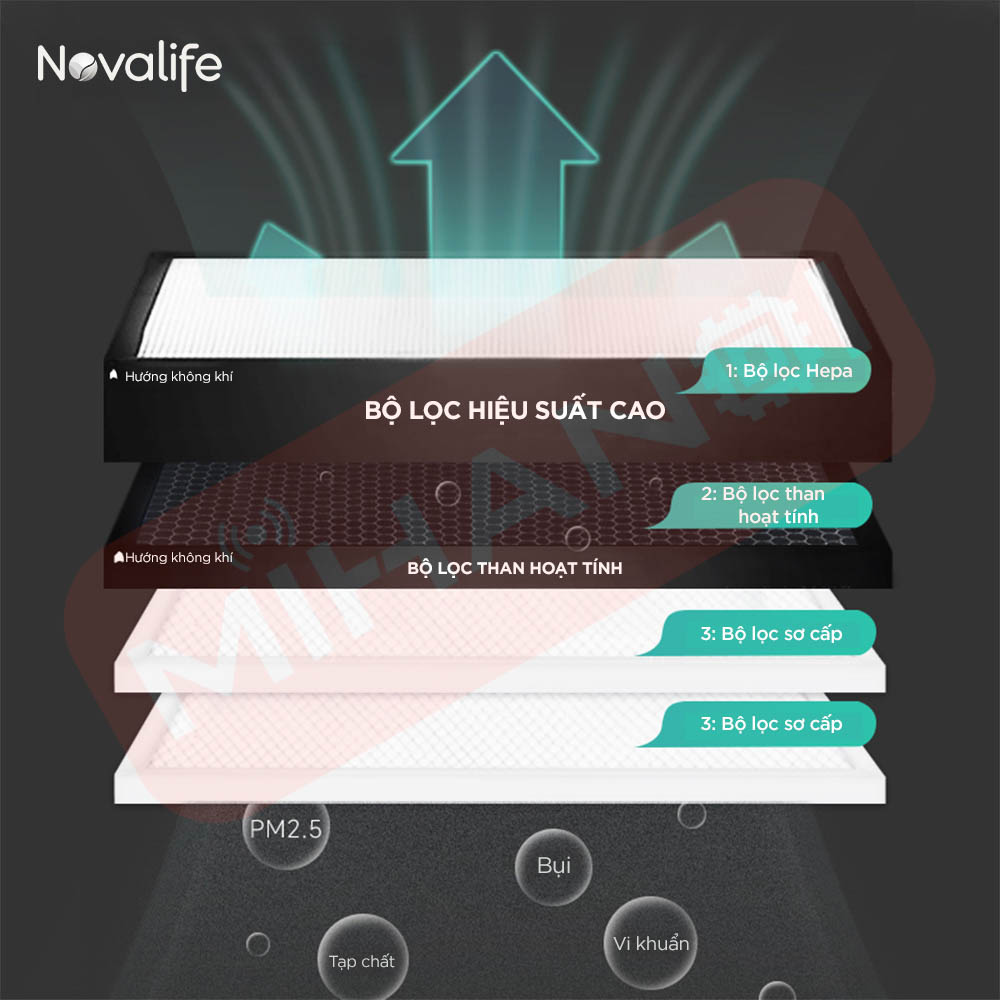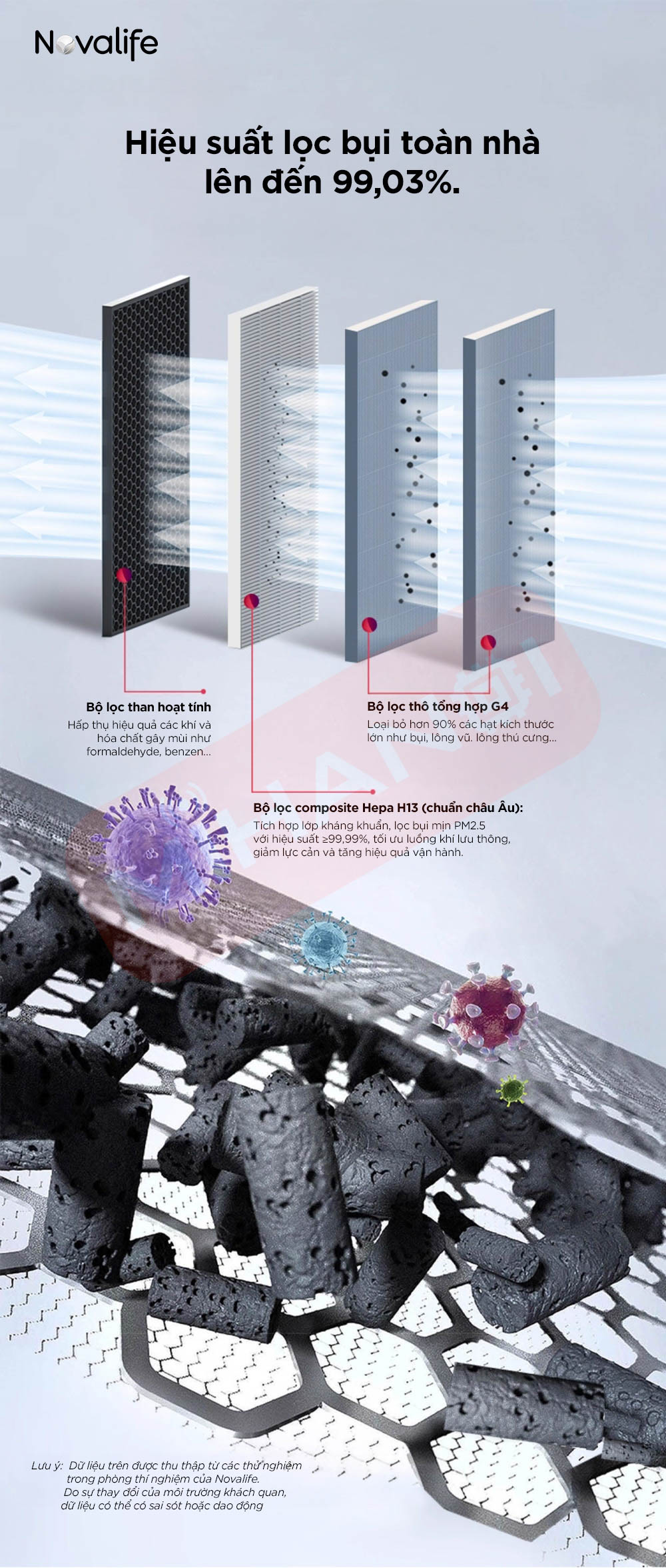 - Bộ lọc HEPA H13 chuẩn châu Âu: lọc PM2.5 với hiệu suất ≥99,99%.