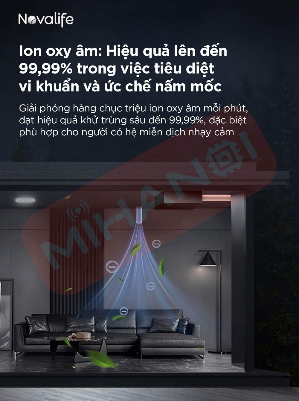 - Ion oxy âm hiệu quả cao: diệt khuẩn, ức chế nấm mốc đến 99,99%.