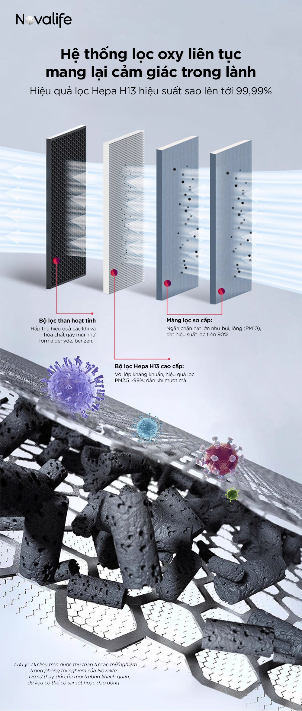 Không chỉ cấp khí tươi, Novalife còn được trang bị hệ thống lọc 3 cấp, giúp làm sạch không khí ngay từ đầu vào: