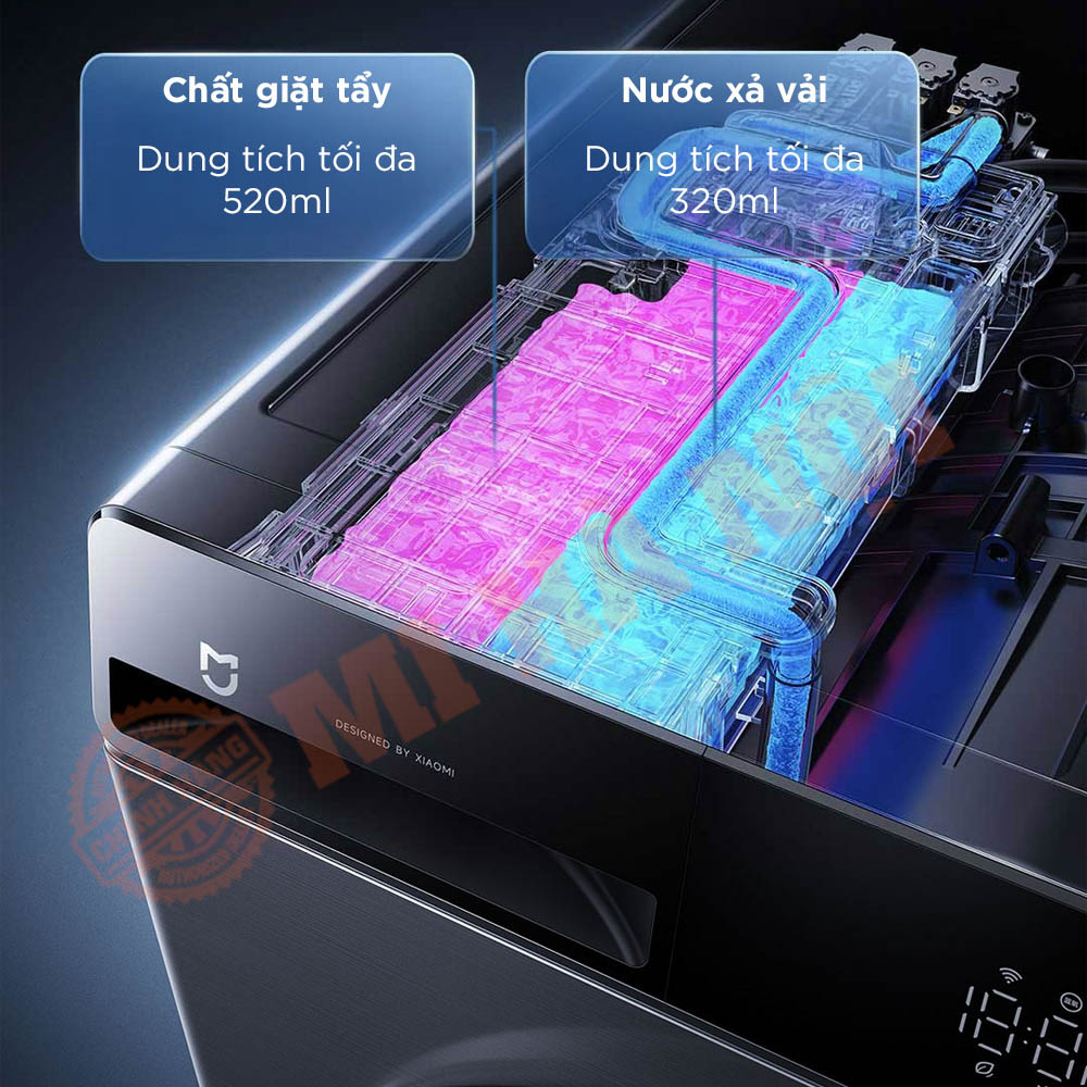 Máy giặt sấy Xiaomi Mijia MJ103 Pro 2026 sở hữu hệ thống phân phối hai chiều thông minh, tự động cảm nhận trọng lượng quần áo để điều chỉnh lượng nước giặt và nước xả chính xác. Với bình chứa 520ml nước giặt và 320ml nước xả, bạn chỉ cần đổ một lần có thể dùng tới 1 tháng, đồng thời giảm thiểu dư lượng hóa chất còn bám lại trên sợi vải.