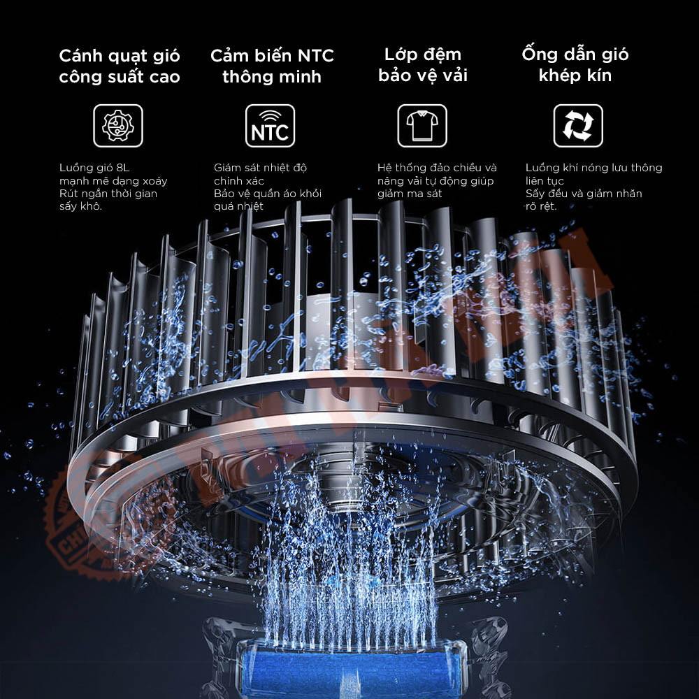 Sấy khô nhẹ nhàng thông minh: Giữ sợi vải mềm mại, hạn chế hư tổn, giảm nhăn và giúp quần áo phẳng hơn.