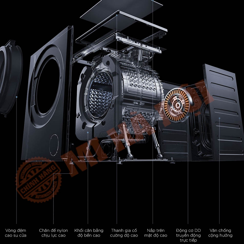 Động cơ truyền động trực tiếp DD bền bỉ: Hoạt động êm ái, ổn định với công nghệ giảm tiếng ồn bảy lớp và hệ thống hấp thụ sốc sáu chiều.