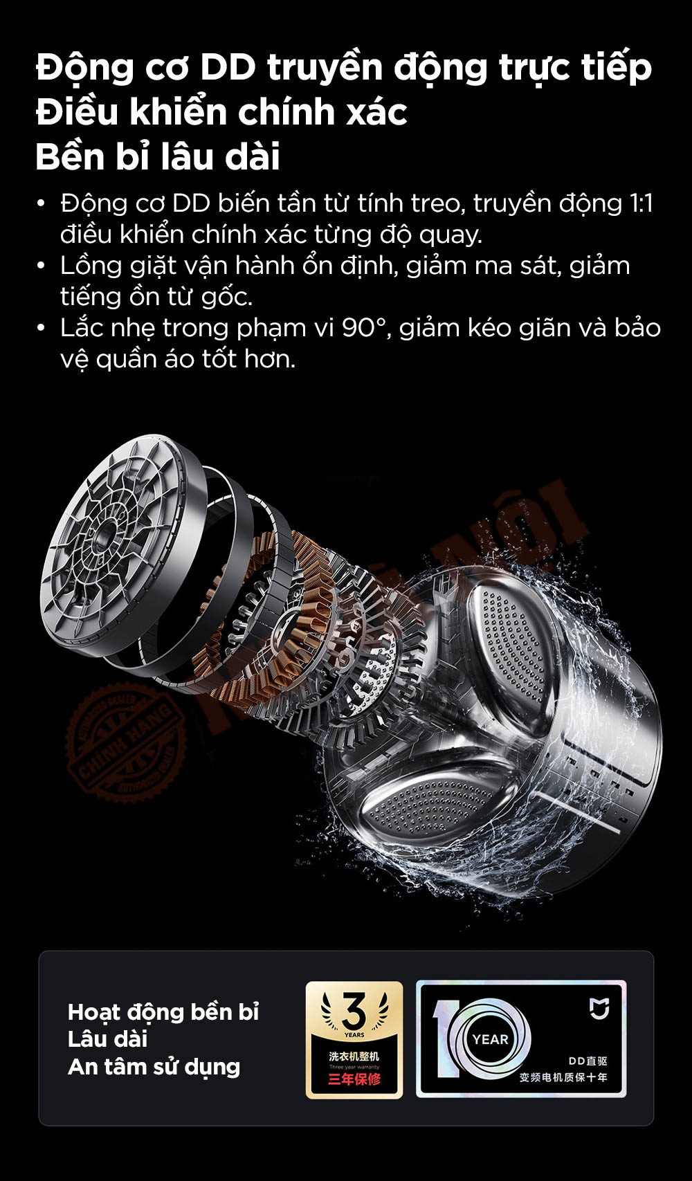 - Động cơ DD truyền động trực tiếp vận hành êm, bền và giảm rung đáng kể.