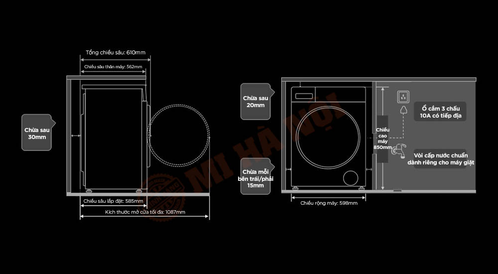- Thiết kế siêu mỏng 562mm, dễ lắp âm tường và tiết kiệm không gian.