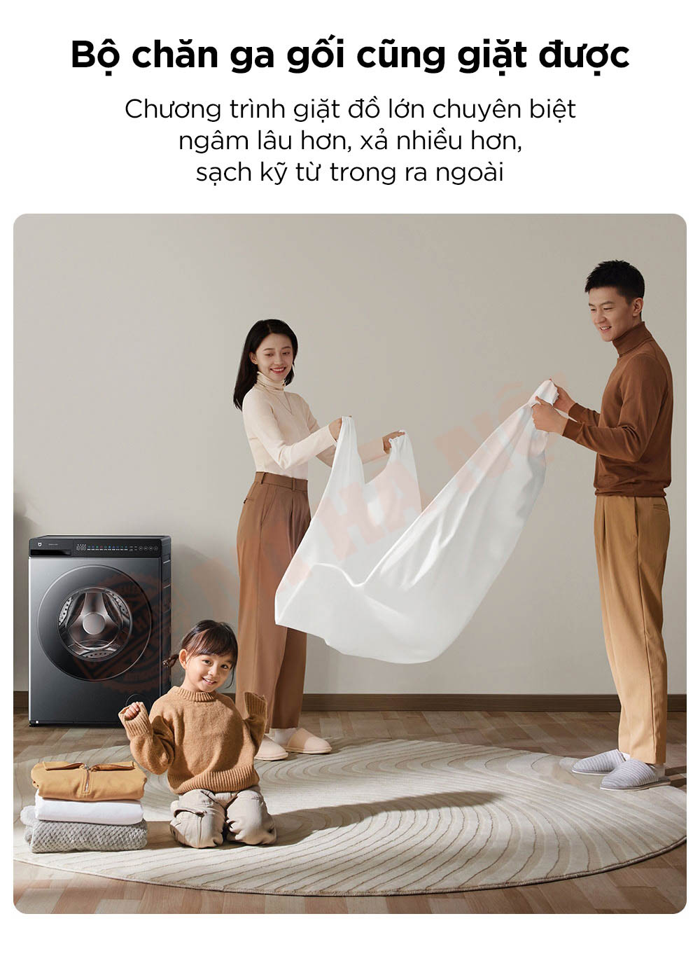 - Dung lượng 12kg giặt thoải mái cho cả gia đình, kể cả chăn ga lớn.