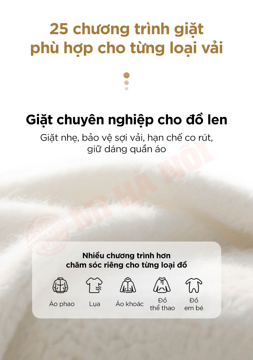 - Trang bị 25 chương trình giặt, phù hợp cho mọi loại vải và nhu cầu giặt.