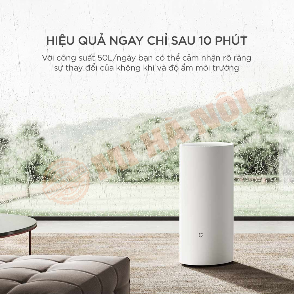 Máy hút ẩm thông minh Mijia 50L có công suất hút ẩm lên đến 50 lít mỗi ngày, tương đương với 100 chai nước khoáng 500ml. Trong điều kiện thử nghiệm với không gian kín có diện tích 44,6m³, nhiệt độ 22°C và độ ẩm tương đối 98%RH, máy hoạt động liên tục trong 10 phút đã làm giảm độ ẩm tương đối 25%RH. Điều này cho thấy hiệu quả nhanh chóng của máy hút ẩm trong việc khôi phục độ khô trong nhà, giúp giải quyết vấn đề ẩm ướt đáng lo ngại trong mùa mưa.