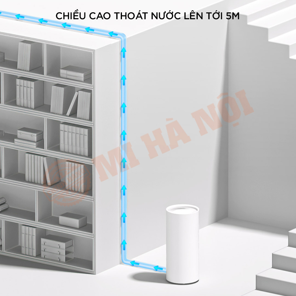 Máy hút ẩm thông minh Mijia 50L được thiết kế với hệ thống thoát nước có áp suất bơm cao, cho phép thoát nước lên đến chiều cao 5 mét mà không cần thoát sàn. Điều này giúp giải quyết vấn đề không thoát nước sàn, thường gặp phải khi sử dụng máy hút ẩm.