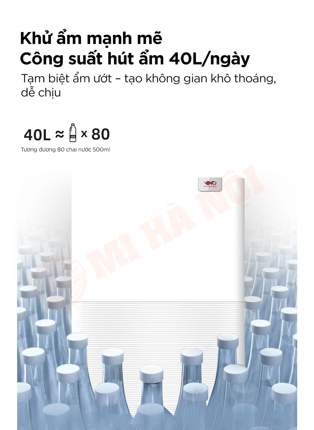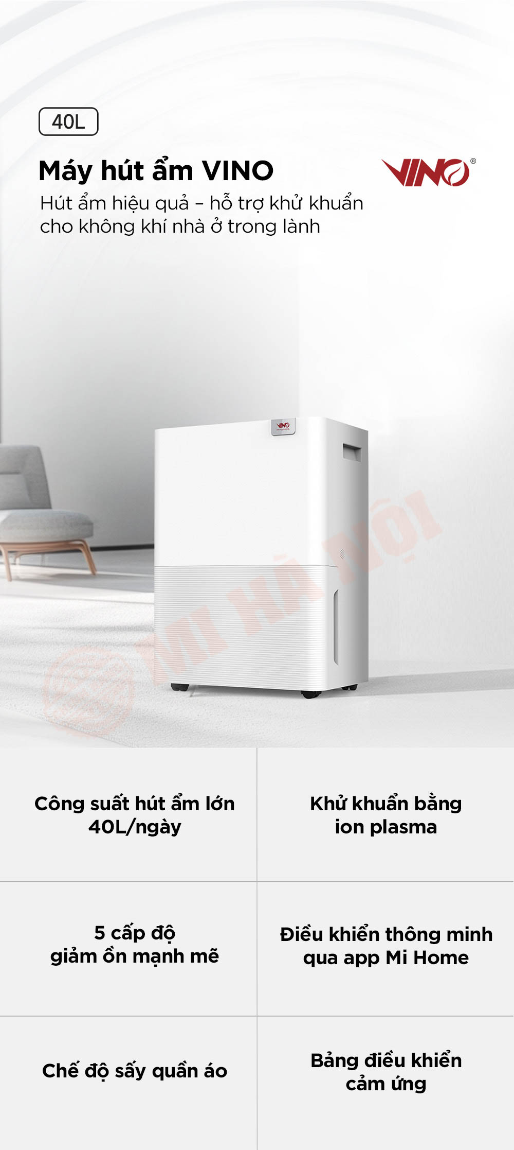 Máy hút ẩm VINO 40L là lựa chọn lý tưởng cho không gian cần khử ẩm mạnh mẽ và ổn định. Với công suất hút ẩm 40L/ngày, khử khuẩn plasma, vận hành êm ái và điều khiển thông minh qua Mi Home, thiết bị giúp giữ nhà luôn khô thoáng, sạch khuẩn và thoải mái trong mọi điều kiện thời tiết.
