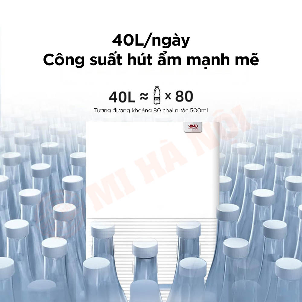 - Hút ẩm mạnh mẽ với công suất 40L/ngày, giúp không gian luôn khô thoáng và dễ chịu.
