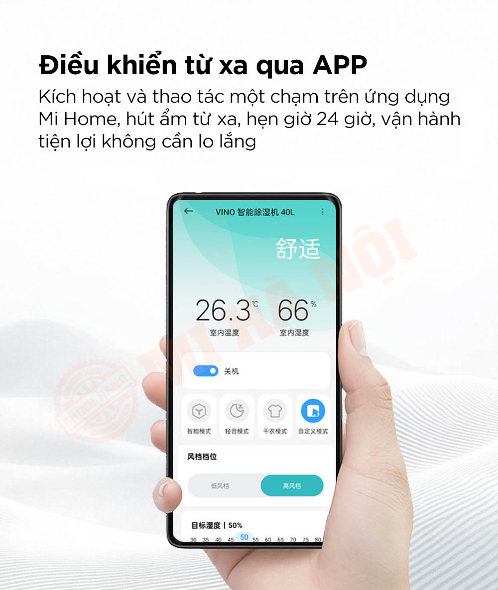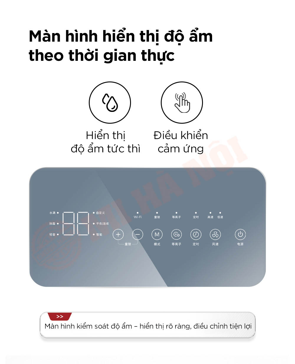 - Hẹn giờ hai chiều 12 giờ, cho phép cài đặt thời gian hút ẩm linh hoạt.