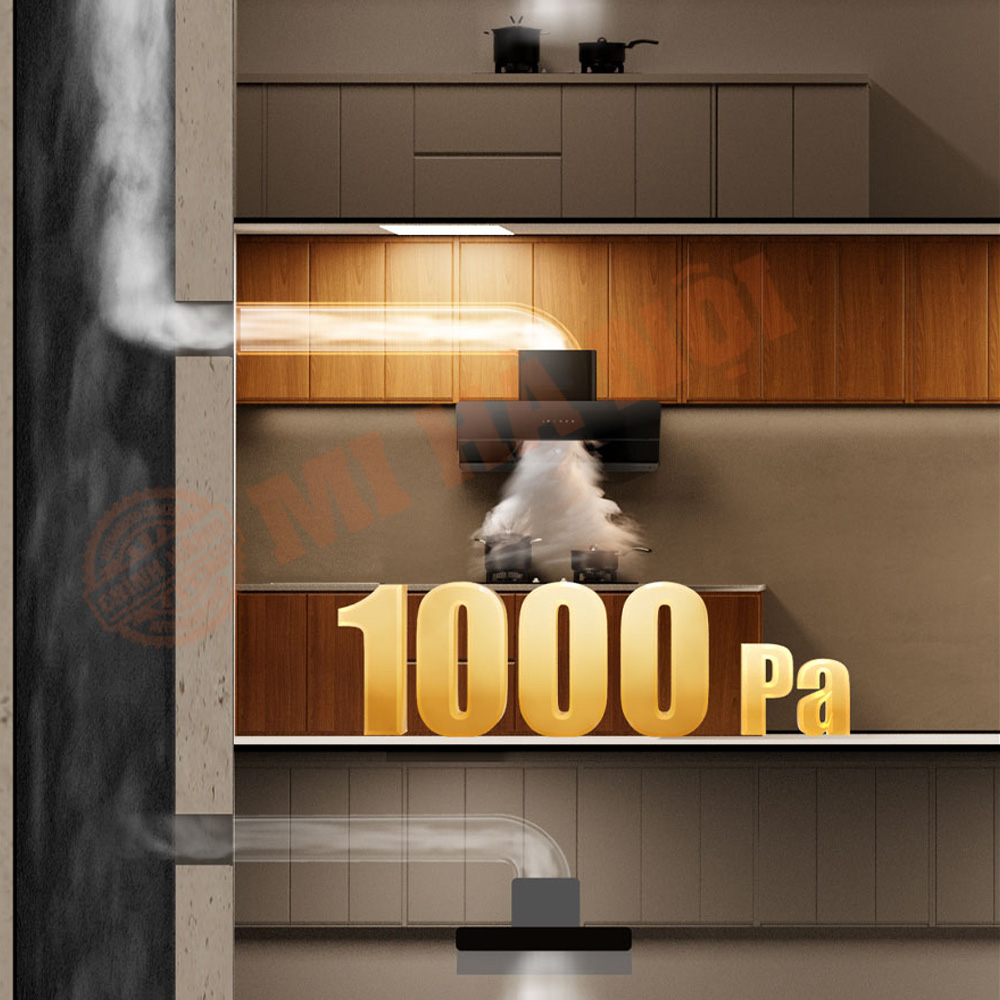 Lực hút tới 1000Pa đảm bảo hút khói hiệu quả ngay cả trong điều kiện phức tạp như ống khói hẹp hay khu dân cư cao tầng, giúp bạn an tâm tận hưởng trải nghiệm nấu nướng thoải mái và không khói bụi, trả lại bầu không khí trong lành cho gian bếp của bạn.