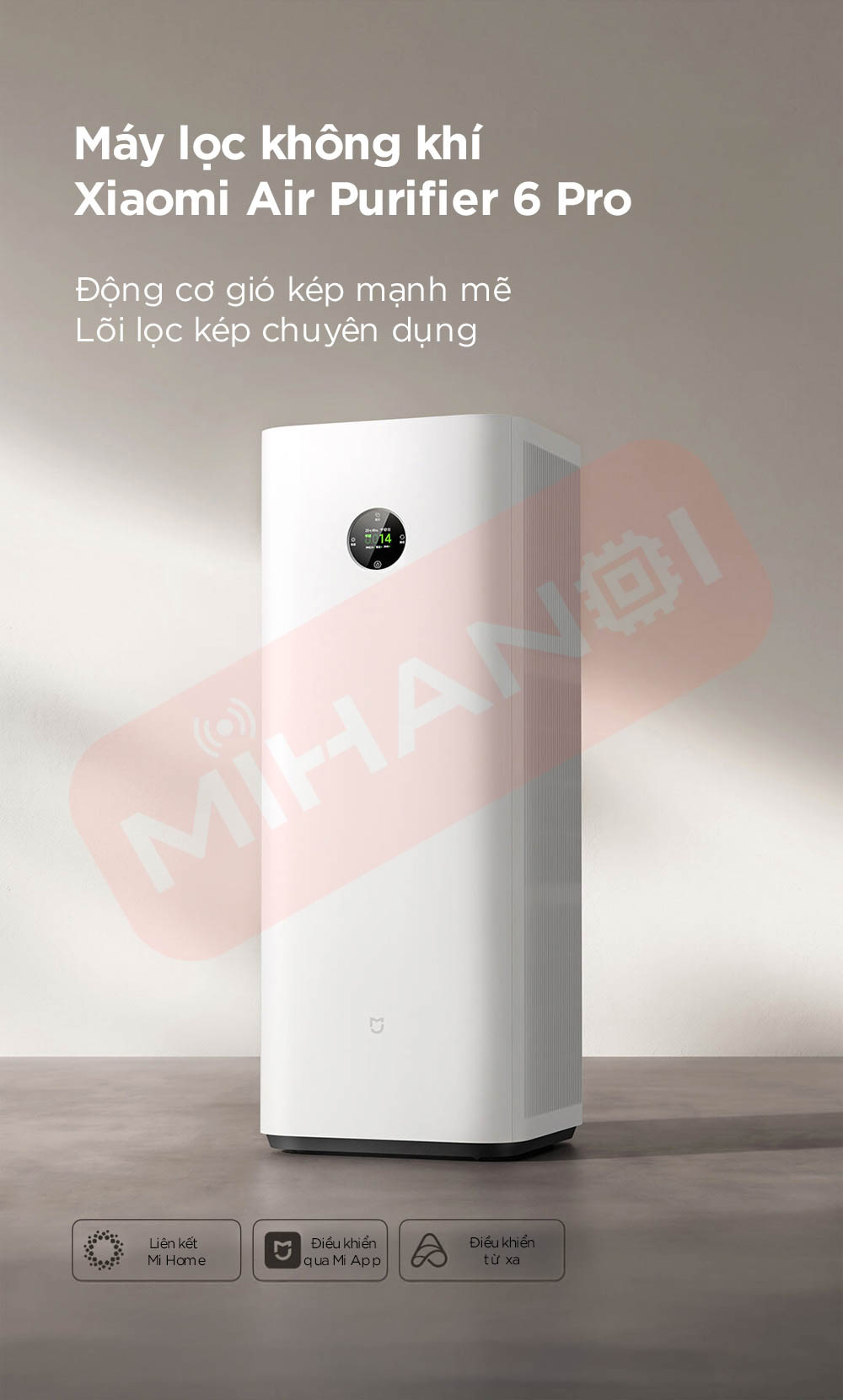 • Hỗ trợ kết nối Mi Home App để điều khiển và giám sát từ xa.
