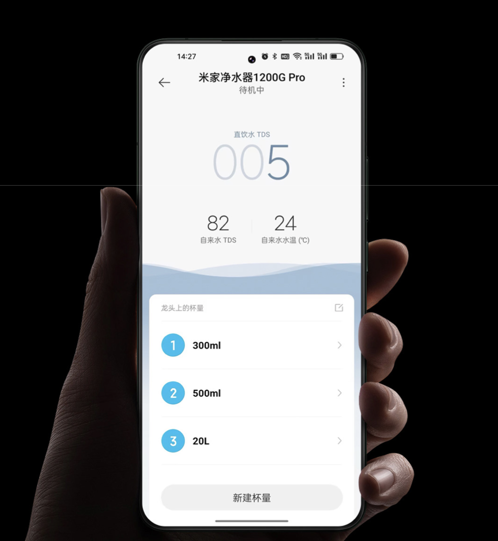 Máy lọc nước Mijia 1200G Pro trang bị vòi màn hình lớn cảm ứng thông minh, cho phép người dùng theo dõi động lực lọc nước trong thời gian thực. Chức năng thu thập và định lượng nước chỉ cần một lần chạm, giúp người dùng dễ dàng lựa chọn mức nước tiêu thụ. Thiết kế thân thiện với người sử dụng, ngay cả người lớn tuổi cũng có thể dễ dàng thao tác, mang lại trải nghiệm sử dụng tiện lợi và hiệu quả.