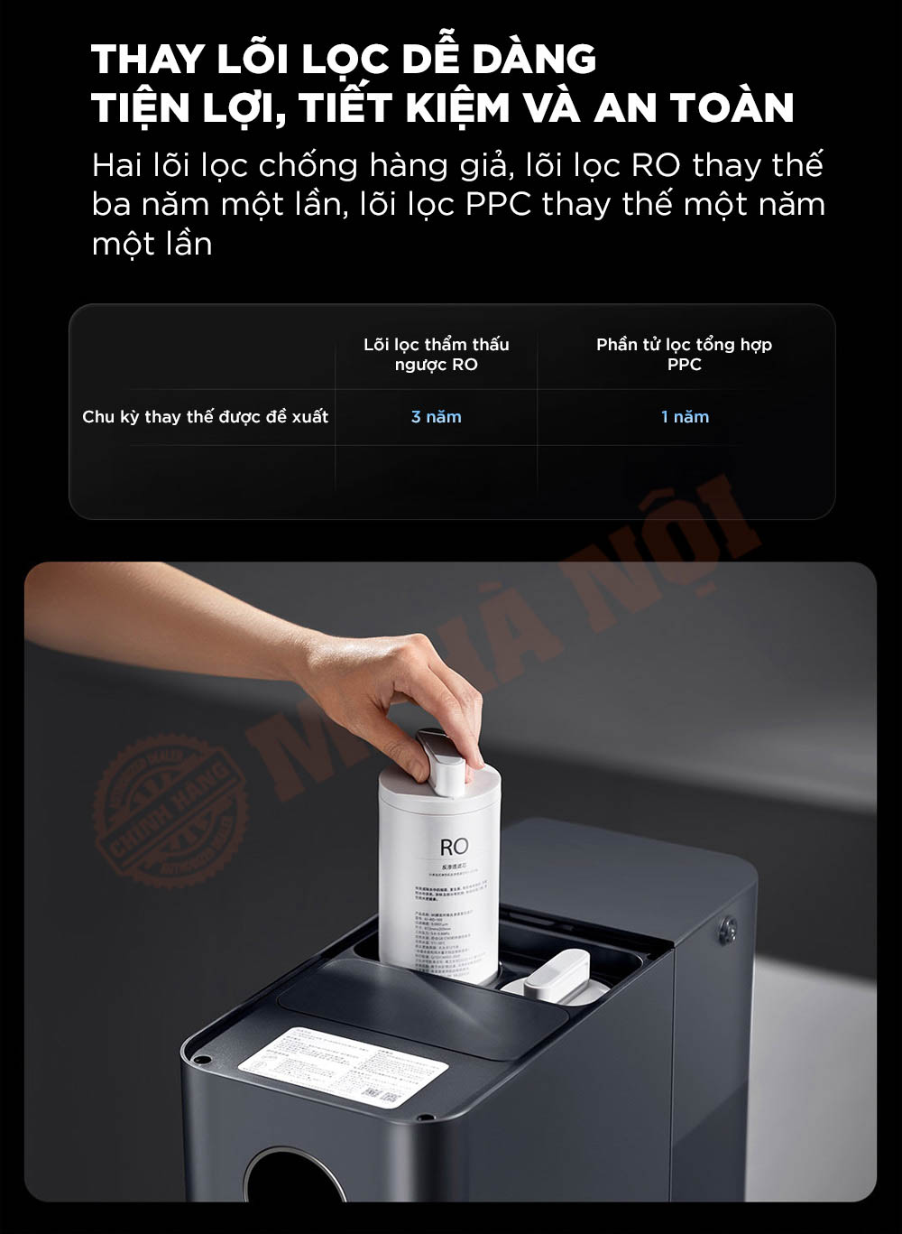 - Lõi lọc RO tuổi thọ lên đến 3 năm, giúp người dùng tiết kiệm chi phí thay lõi và bảo dưỡng.